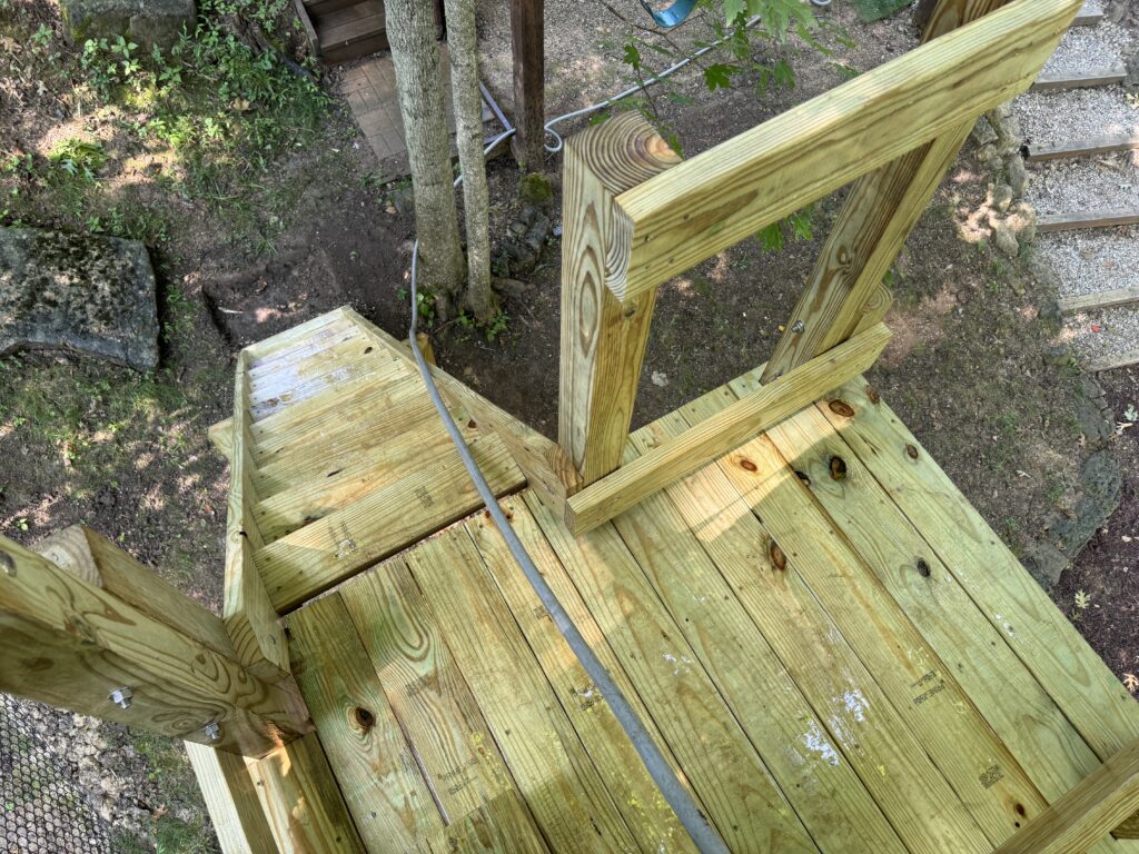 Once the “tree” was finished I directed my attention to the other end of the yard where I would construct the tower for the starting point of the zipline. This is one of a few projects that was not started with a full set of drawn-up plans. I basically engineered the structure as it was assembled.