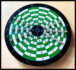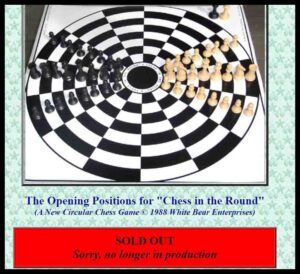 To this day I cannot find the rules I had written for the games. Now, some 30+ years later, I decided to Google “circular chessboards”. I found only one board that looked like mine and it was dated 1988. It was the same board I had seen advertised many years earlier in a magazine. Sadly for the inventor, they no longer make the boards.