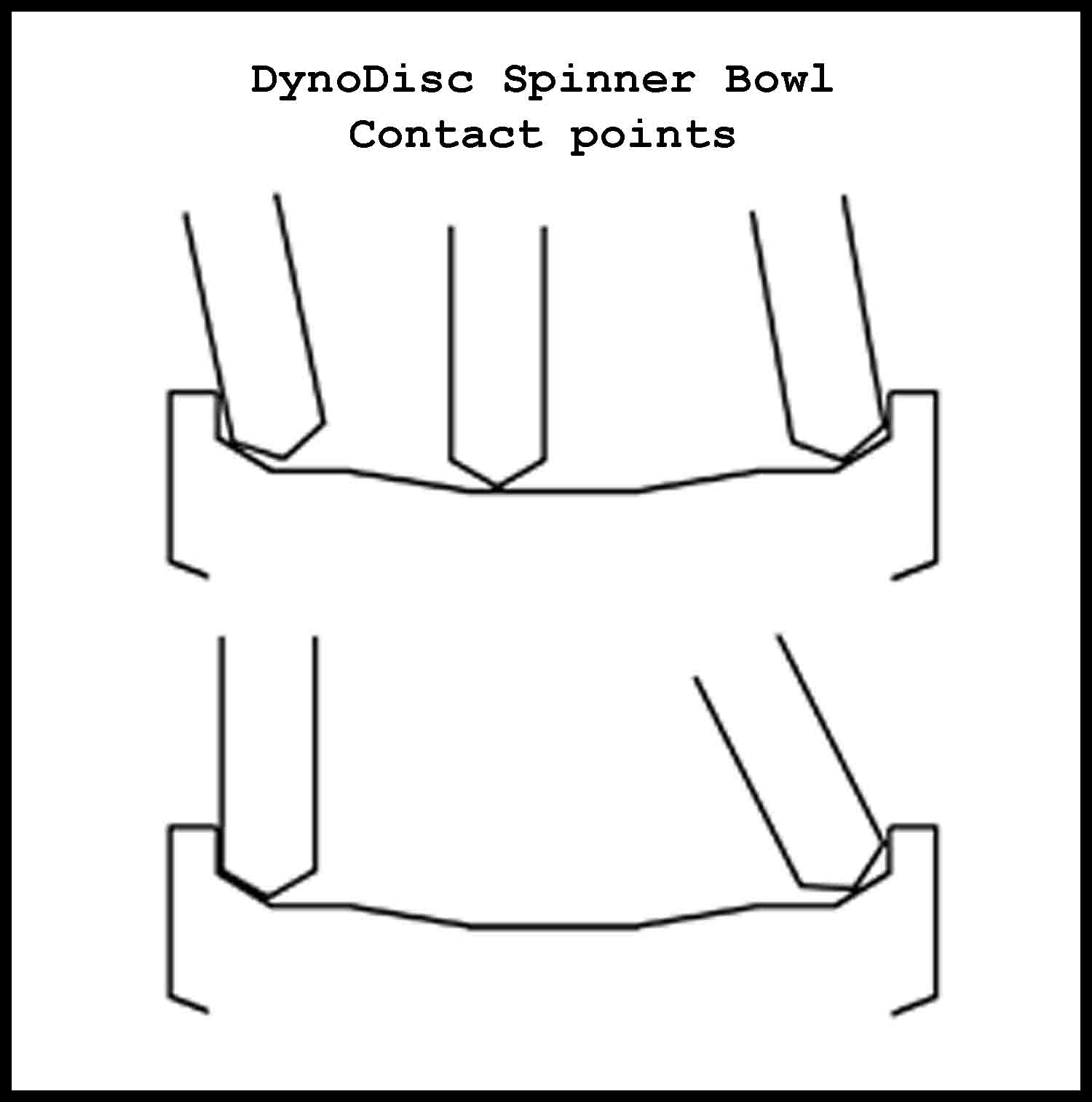 I’ve experimented with many variations of this design and they all have different characteristics. Obviously, the larger the interior diameter of the bowl, the faster a disc can possibly turn. However, a smaller size can give a spinner a great overall experience. Click on the pics for a bigger image.