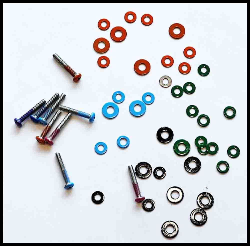 Orbital Summation: You will use 6-32 x 1″ stainless round head machine screws, along with 3/8″ outside diameter flat washers and 6-32 stainless nuts. Due to the small distance between holes in a few places, the diameter of the widest part should not exceed 3/8″.